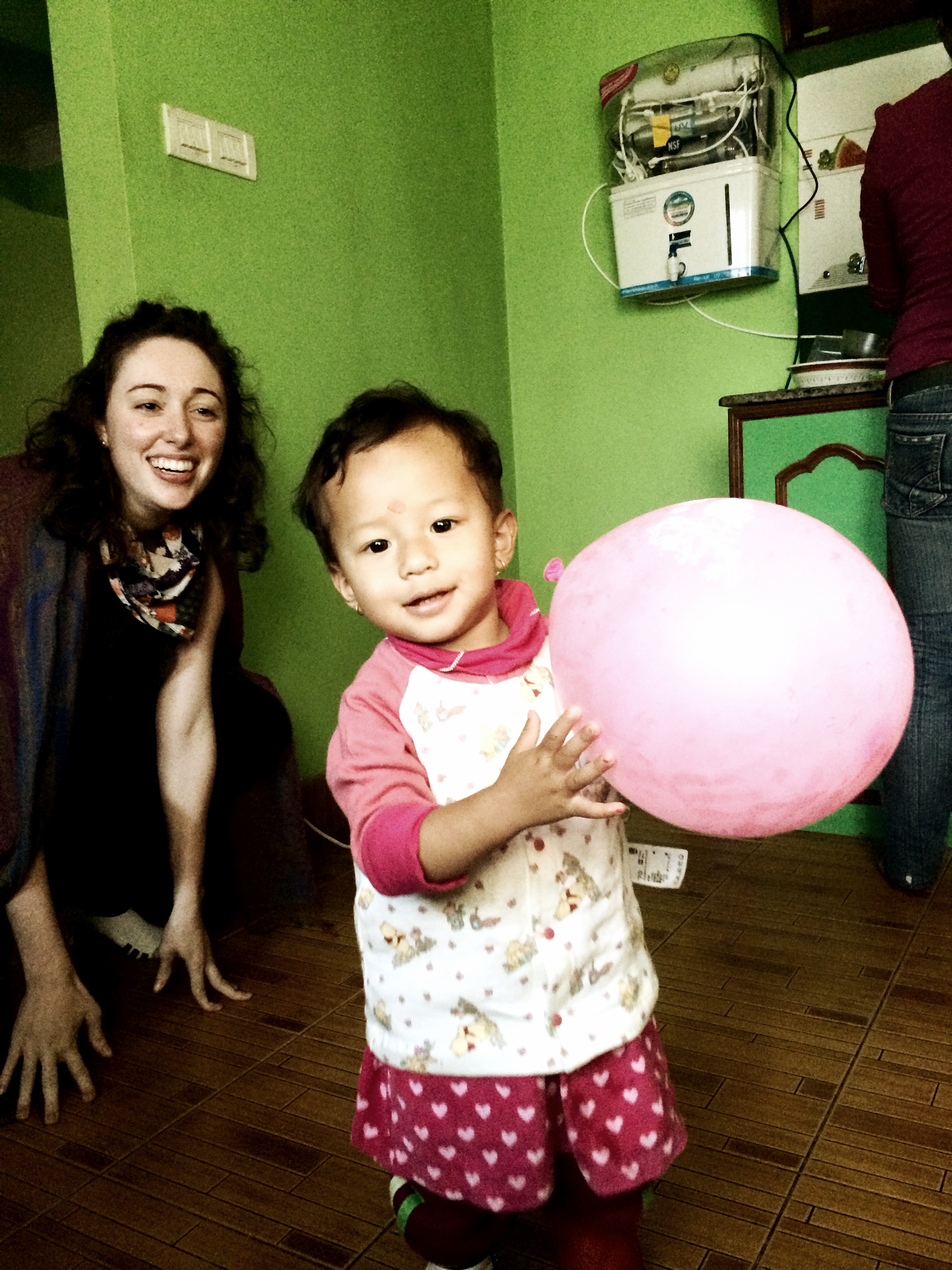 During my time here I have gotten to help a small amount with lessons and organizing the tourist guide program, but mostly I have just gotten to enjoy the kindness and generosity of my hosts. The SASANE building has bedrooms on the top floor so that it can also function as a hostel, although only girls are allowed as overnight guests or volunteers. I have been receiving home-cooked Nepali meals every day, learning how to make Momos (Nepali-style potstickers) with Laxmi and Indira, playing with Indira’s daughter, and they always go with me to see new sites or invite me to go with them to the market. This has allowed me to see Nepal less through a tourist’s eyes, but more through a local’s. Generally when we go out I’m the only foreigner around, and that’s an experience I’m grateful for. My time here would be so different if I had stayed in a hostel or hotel in the tourist district- Thamel, so I will always be thankful for the support and eye-opening opportunities I have received from my friends at SASANE. If anyone wants to learn more about them, just go to their website http://sasane.org.np/